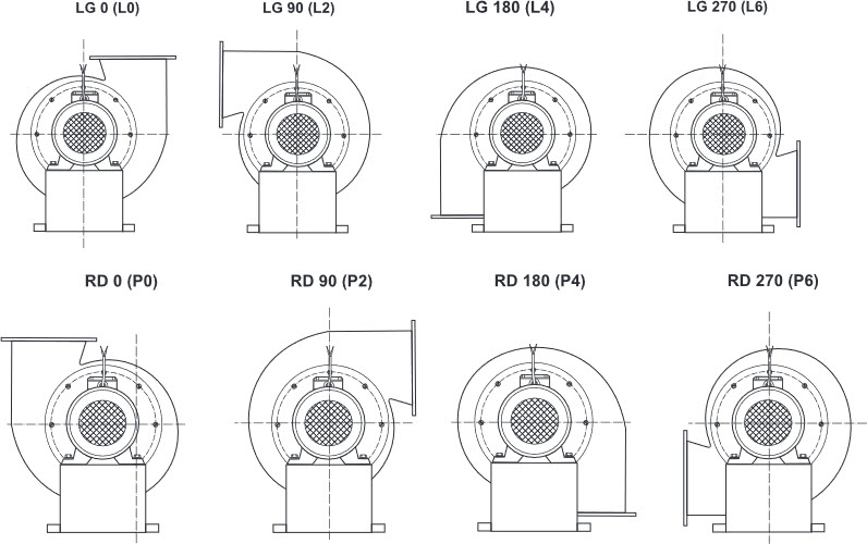 Standardmudeli tiiviku korpuse suund LG 90 (L2). Teised suunad on saadaval eritellimusel: