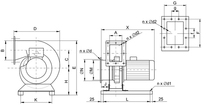 H | K | M | N | nxØd | J | L | X | nxØd1 | G | g | F | f | nxØd2 |