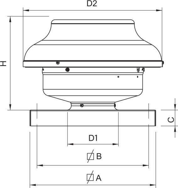 MRF - išcentriniai stoginiai ventiliatoriai be pado ≤1222 m³/h